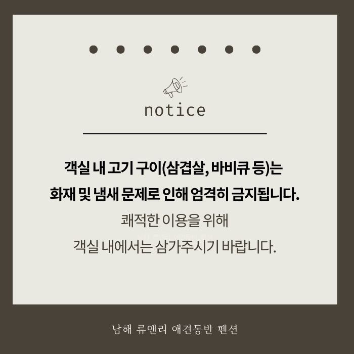 남해 류앤리 애견동반 펜션의 부대시설과 특장점을 확인해 보세요.